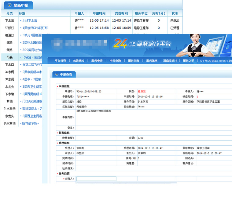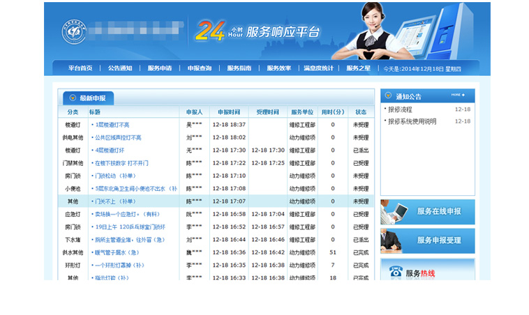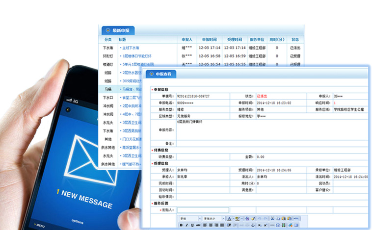 網(wǎng)上報修系統(tǒng),適用于企業(yè)、高等院校、政府部門、中小學校等物品、設備報修管理與維修登記。
